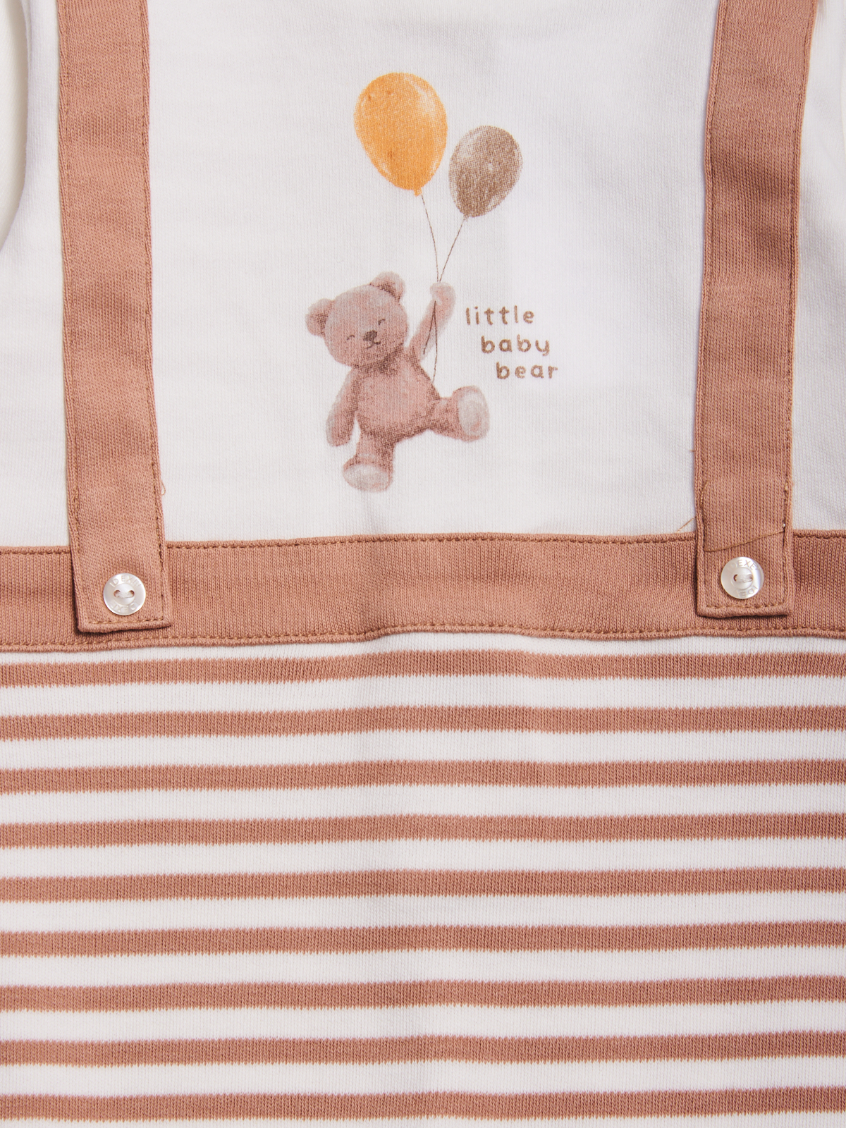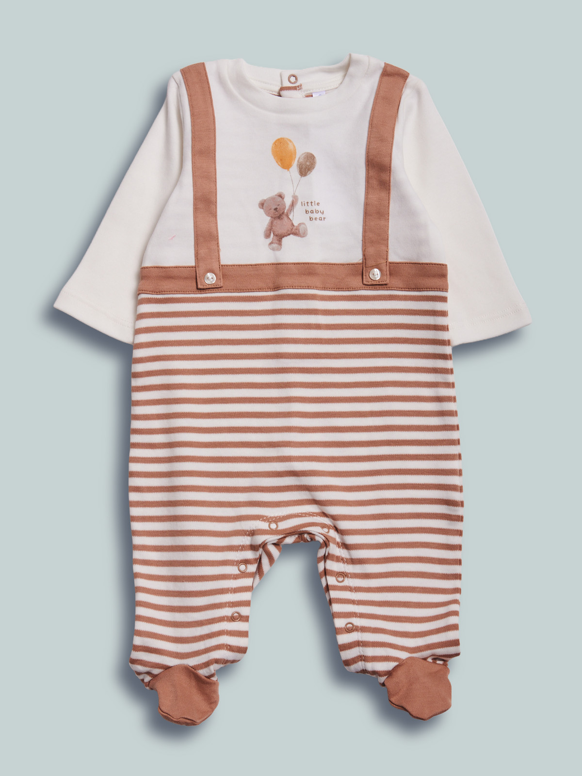 Tutina in caldo cotone effetto finto doppio, parte superiore e particolari in unito, parte inferiore rigato. Oltre all’apertura sul retro, presenta una comoda apertura entrogamba per facilitare il cambio. Un capo funzionale ed alla moda che non puรฒ mancare nell’armadio del vostro neonato.