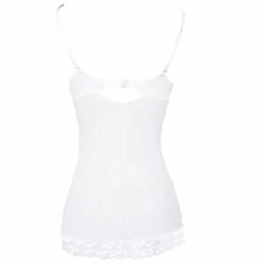 La sottoveste donna bianca presenta una linea aderente che segue la silhouette senza costringere. La chiusura con gancio sul reggiseno garantisce stabilità e una vestibilità sicura. Un capo di lingerie ideale per chi cerca intimo femminile elegante e curato nei dettagli.