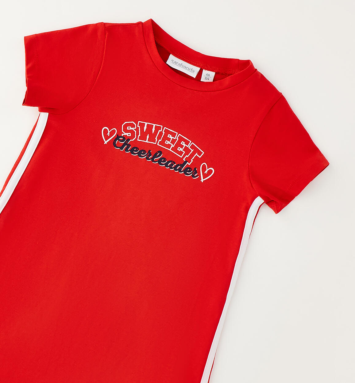 DESCRIZIONE Abito per bambina Sarabanda realizzato in jersey stretch di cotone con stampa davanti. Lunghezza mini. Bande laterali Composizione Colore ROSSO 95%Cotone 5%Elastan
