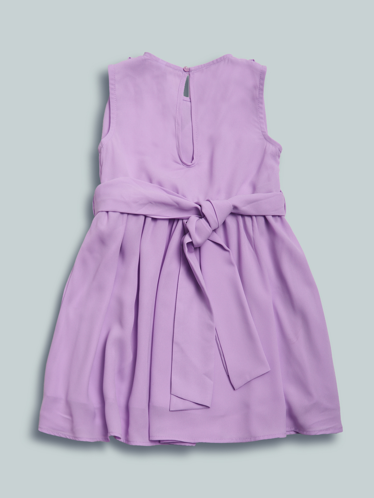 Vestito smanicato in morbido e corposo voile. Apertura posteriore con goccia e bottoni effetto madreperla. Un capo dai dettagli sofisticati ideale per la cerimonia.